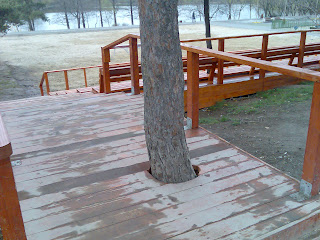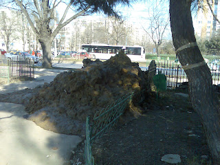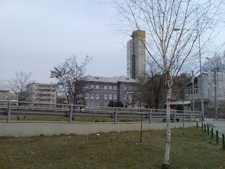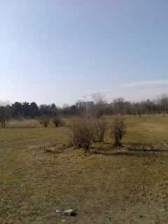 Ăla dintre macara, grafitti-ul chinuit şi ţevi se chinuie să fie un lac şi încă îi iese. Ăla din jurul celor de mai sus se chinuie să fie un parc, şi îi iese, în măsura în care nu se lasă deranjat de buldozere, cisterne care cară moloz şi diverse alte utilaje de construcţie.
