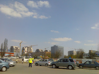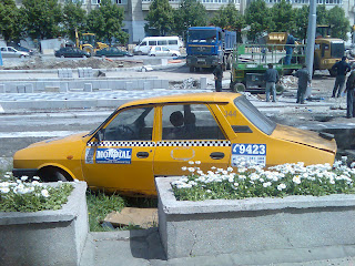 Pe lângă Unirii. Un taxi parcat în spaţiul verde. Mulţumim complicilor noştri, care strigau din public "Viaţa prin 6233!!"