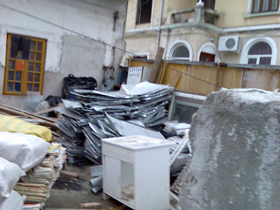 În curtea unei căsuţe de lângă Piaţa Iancului, s-a strâns o cantitate impresionantă de fier vechi.